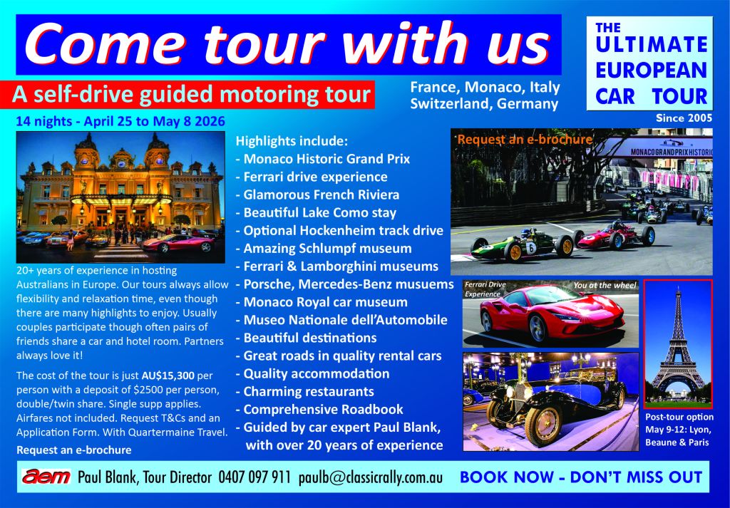 Request full brochure and details by email, from paulb@classicrally.com.au